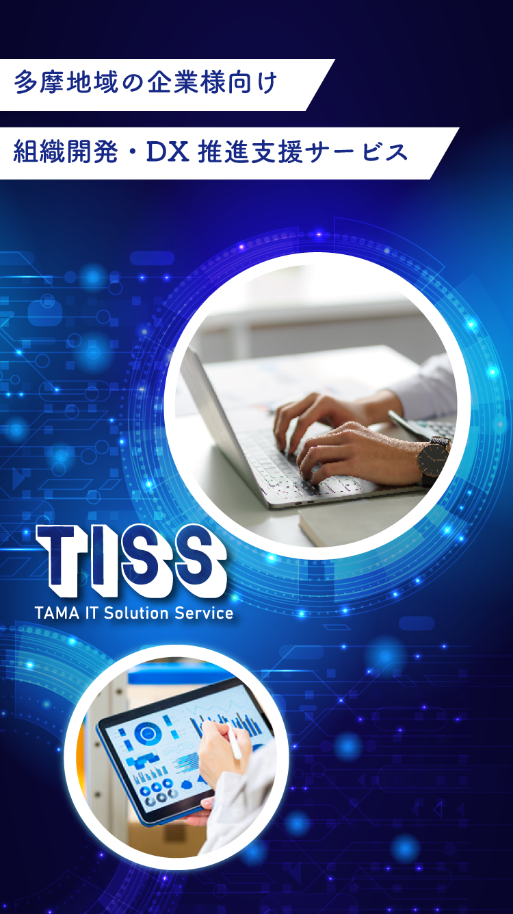 TISS(ティス:TAMA IT Solution Service)は、多摩地域の中小企業に向けて、技術と組織力の強化を通じてビジネスをサポートします。
